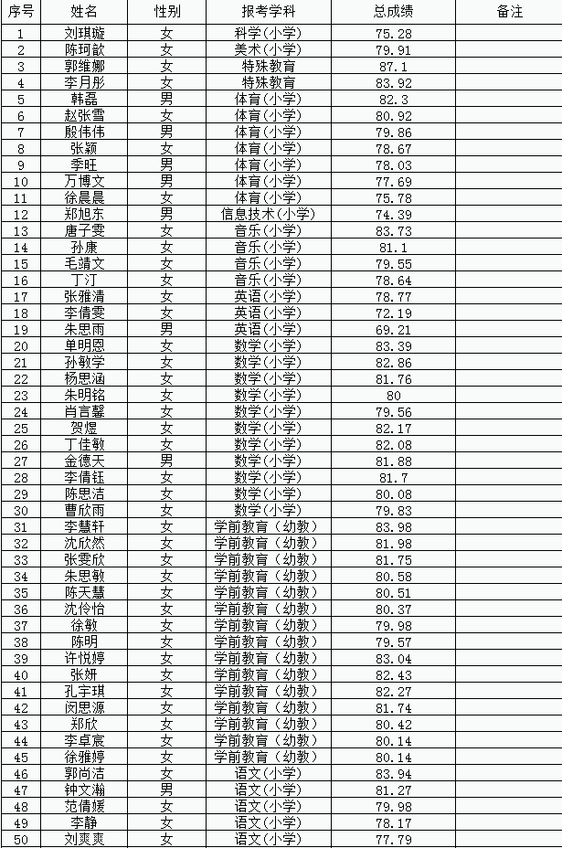 根據(jù)《南京市秦淮區(qū)教育局所屬學校2022年公開招聘新教師公告》(寧事招公告(R)〔2021〕102號),秦淮區(qū)小學、幼兒園2022年新教師公開招聘面試工作已于2月26日結束,F(xiàn)根據(jù)總成績排名,確定入圍體檢人員名單,并予以公示。如有異議,請于公示期間提出。