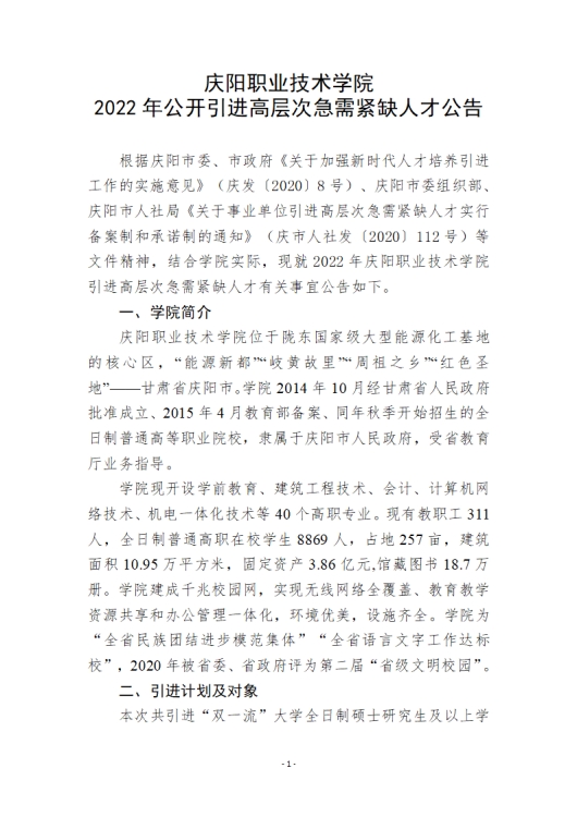 附件1:慶陽(yáng)職業(yè)技術(shù)學(xué)2022年公開(kāi)引進(jìn)高層次緊缺人才崗位需求表.xls