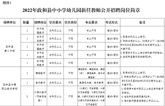 1.2022年政和縣中小學(xué)幼兒園新任教師公開招聘崗位簡(jiǎn)章