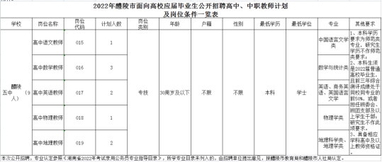 2022年醴陵市面向高校應(yīng)屆畢業(yè)生公開招聘高中、中職教師計劃及崗位條件一覽表.xlsx