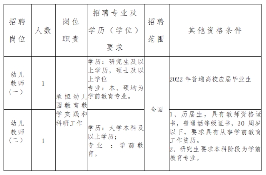 注:歷屆生學歷證書、教師資格、有關榮譽稱號的取得和年齡計算截止時間均為公告發(fā)布之日。應聘人員屬于2022年全日制普通高校應屆畢業(yè)生的,可憑就業(yè)推薦表或學生證報名,且須在2022年9月30日前取得并提供相應的學歷(學位)證書;屬于2021年10月1日至2022年9月30日畢業(yè)的國(境)外留學回國(境)人員也可等同于國內(nèi)2022年制普通應屆畢業(yè)生,報考時仍未畢業(yè)的可憑國(境)外學校學籍證明報名,但須于2022年12月31日前取得國家教育部學歷學位認證書,專業(yè)以所學課程名稱為依據(jù)。