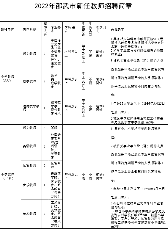 10.招聘學(xué)科崗位人數(shù)及學(xué)歷、學(xué)位、年齡等要求詳見“附件1:2022年邵武市新任教師招聘簡章”。