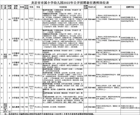 附件:《龍巖市市屬小學(xué)幼兒園2022年公開招聘新任教師崗位表》