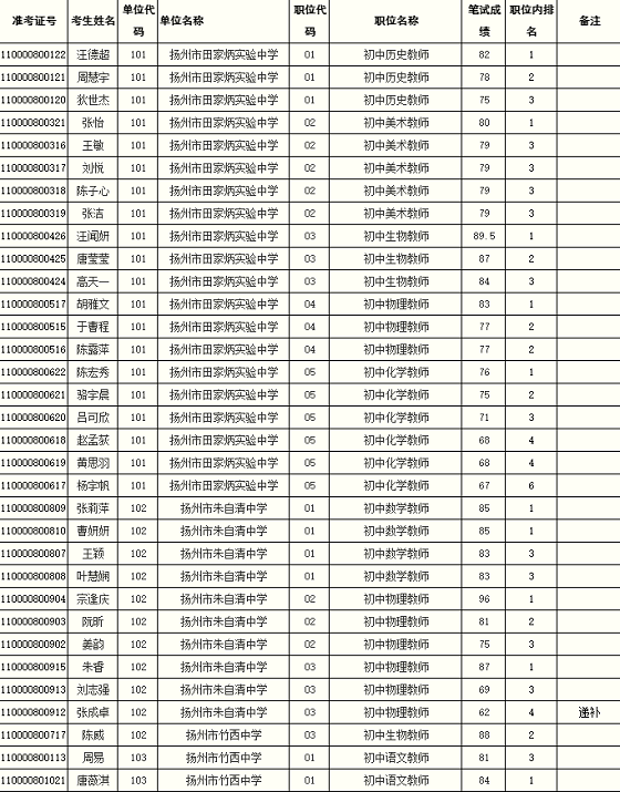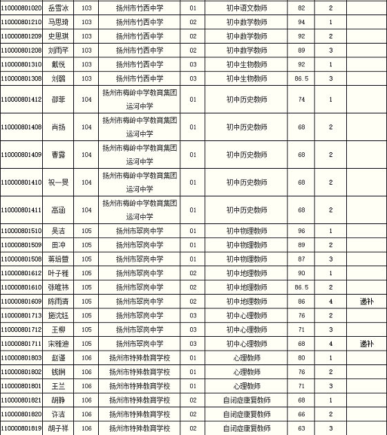 2022年江蘇揚(yáng)州市教育局所屬事業(yè)單位公開招聘教師面試人員名單