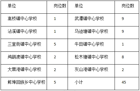 (五)三堂街鎮(zhèn)中心學(xué)校、鲊埠回族鄉(xiāng)中心學(xué)校、武潭鎮(zhèn)中心學(xué)校、馬跡塘鎮(zhèn)中心學(xué)校、松木塘鎮(zhèn)中心學(xué)校等5個邊遠(yuǎn)鄉(xiāng)鎮(zhèn)學(xué)校崗位優(yōu)先考慮桃江籍考生。