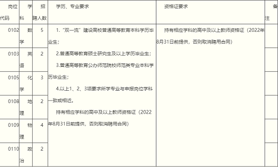 (三)學(xué)歷、專業(yè)及教師資格條件(詳見職位表)