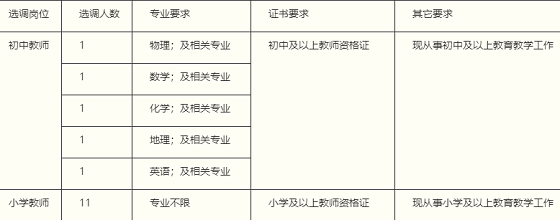 按照中共通?h委編制委員會下達的編制使用計劃,2022年通?h教育體育系統(tǒng)擬從縣外選調(diào)初中、小學教師16人,選調(diào)崗位、人數(shù)及要求如下: