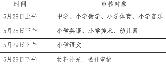 1.時間:2022年5月28日-5月29日(具體時間為上午8:30-11:30,下午14:30-17:00),各學(xué)科審核時間段劃分如下: