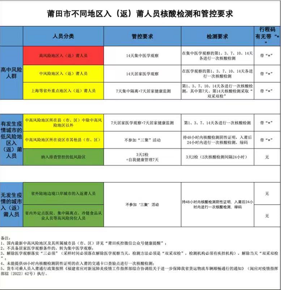 3.莆田市不同地區(qū)入(返)莆人員核酸檢測(cè)和管控要求