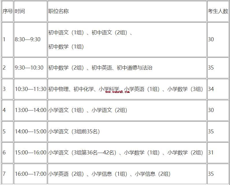詳細安排表:(因疫情防控要求,考生必須嚴格按照時間段參加復審,不得提前和推遲)