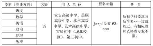 政治素質(zhì)好,遵紀守法,品行端正,身體健康。有志于長期在安吉從事教育教學工作,有較強的團結協(xié)作和敬業(yè)精神,碩士研究生年齡在30周歲以下(1992年7月1日以后出生),博士研究生年齡在35周歲以下(1987年7月1日以后出生),具有中華人民共和國國籍。