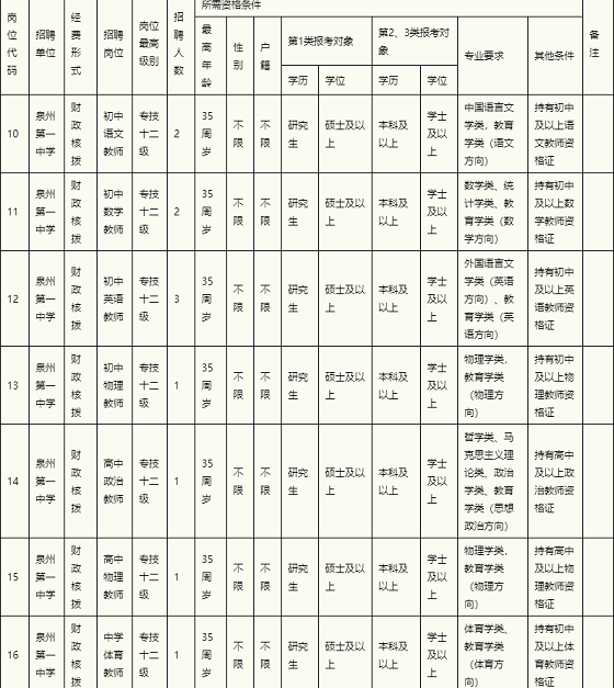 本次泉州一中計(jì)劃招聘教師11人,詳見(jiàn)《2022年泉州市直部分公立學(xué)校專項(xiàng)公開(kāi)招聘新任教師崗位信息表(二)》(附件1)。