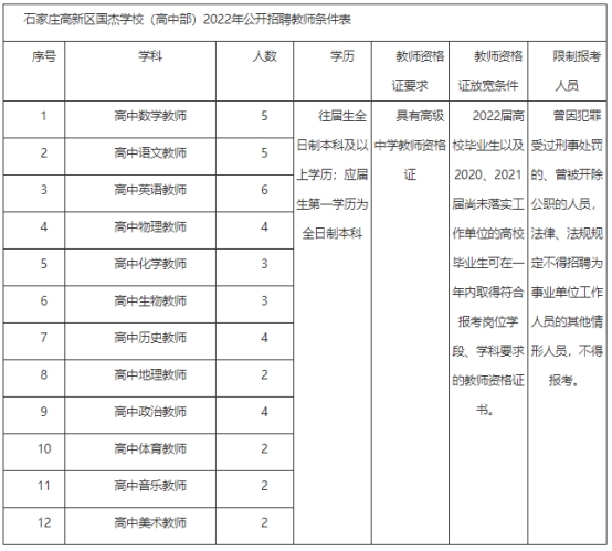 面試通過人員,由石家莊高新區(qū)國杰學校對擬聘人員進行崗前培訓,一周培訓考核期,經培訓考核合格后方可上崗。