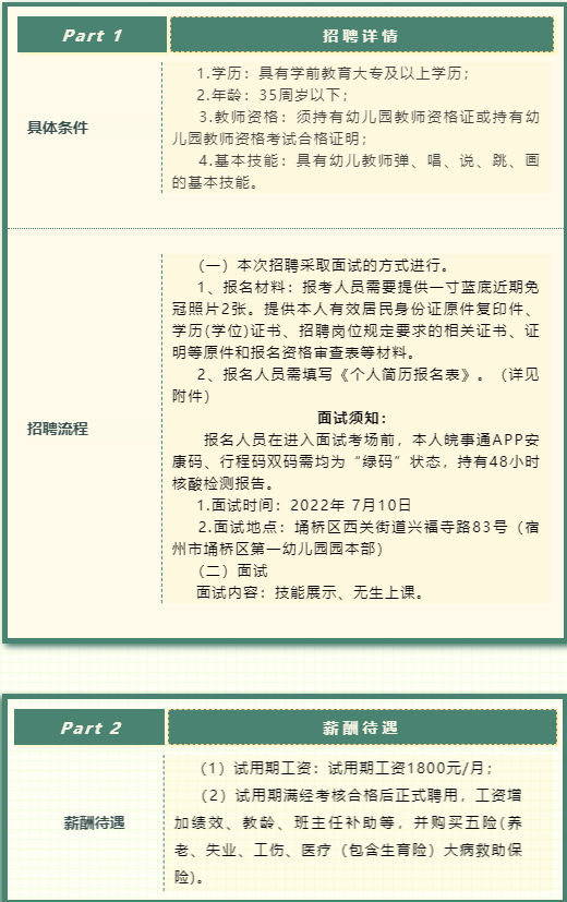 安徽嘉美鑫人力資源有限公司受宿州市埇橋區(qū)第一幼兒園委托,擬面向社會公開招聘幼兒園專任教師50名。招聘工作按照擬定招聘計劃、發(fā)布招聘公告、報名與資格審查、面試、體檢和簽訂勞動合同等程序進行。