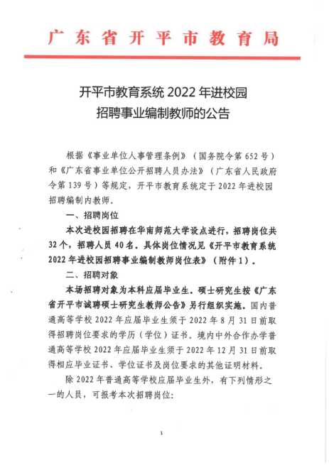 附件1:開平市教育系統(tǒng)2022年進(jìn)校園招聘事業(yè)編制教師崗位表.xls
