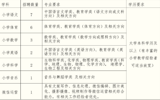 一、招聘學(xué)科、數(shù)量及專業(yè)要求: