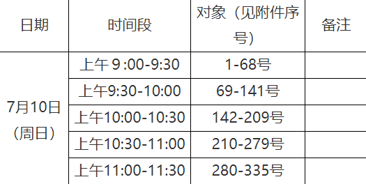 2022年7月10日(周日),復(fù)審具體批次及時(shí)間節(jié)點(diǎn)見(jiàn)下表。