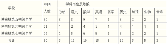 為了充實我縣城區(qū)學校教師隊伍,優(yōu)化教師結構,根據《事業(yè)單位人事管理條例》《關于規(guī)范博白縣機關事業(yè)單位工作人員轉任的規(guī)定(試行)》等有關規(guī)定,從博白縣鄉(xiāng)鎮(zhèn)公辦教師中公開競聘縣城區(qū)學校教師80名,現將有關事項公告如下: