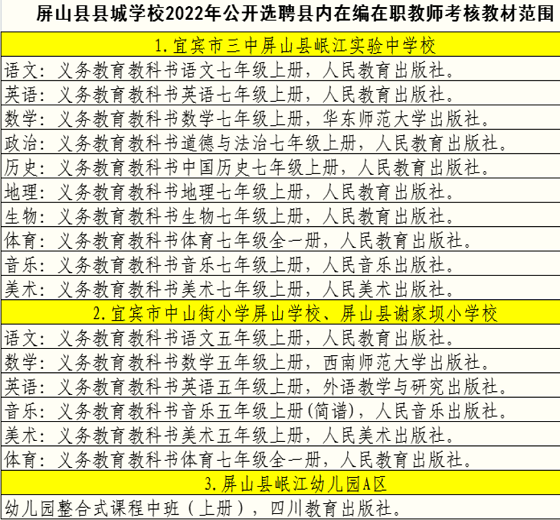 各選聘崗位詳見《屏山縣縣城學(xué)校2022年公開選聘縣內(nèi)在編在職教師崗位表》。