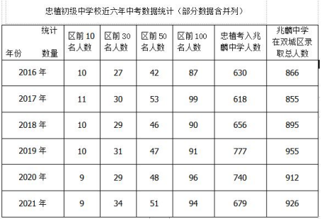 建校至今,共為上級學校培養(yǎng)優(yōu)秀畢業(yè)生11827名。以2022年高考為例:兆麟中學前11名學生全部為忠植畢業(yè)生,前50名中有忠植學子45名;兆麟中學600分以上學生共33人,其中忠植學子30名;兆麟中學共有4名同學考入清華北大,均為忠植學子,他們是徐天瑞、蘇依涵、孫朗、徐興祺。