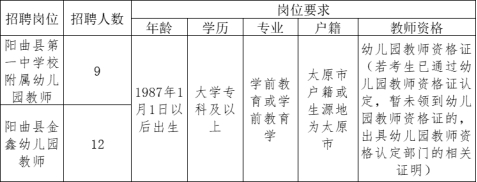 為加強陽曲縣學(xué)前教育教師隊伍建設(shè),解決新成立幼兒園教師緊缺問題,受陽曲縣教育局委托,由山西三晉青創(chuàng)勞務(wù)有限公司面向社會公開招聘勞務(wù)派遣制幼兒園教師21人,其中陽曲縣第一中學(xué)校附屬幼兒園9人、陽曲縣金鑫幼兒園12人。招聘相關(guān)事宜如下: