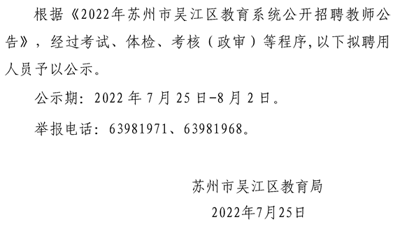 2022年蘇州市吳江區(qū)教育系統(tǒng)公開招聘教師擬聘用人員公示.docx