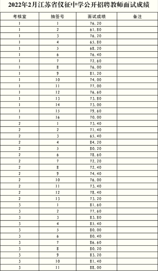 2022年2月江蘇省揚(yáng)州儀征中學(xué)公開招聘教師面試成績