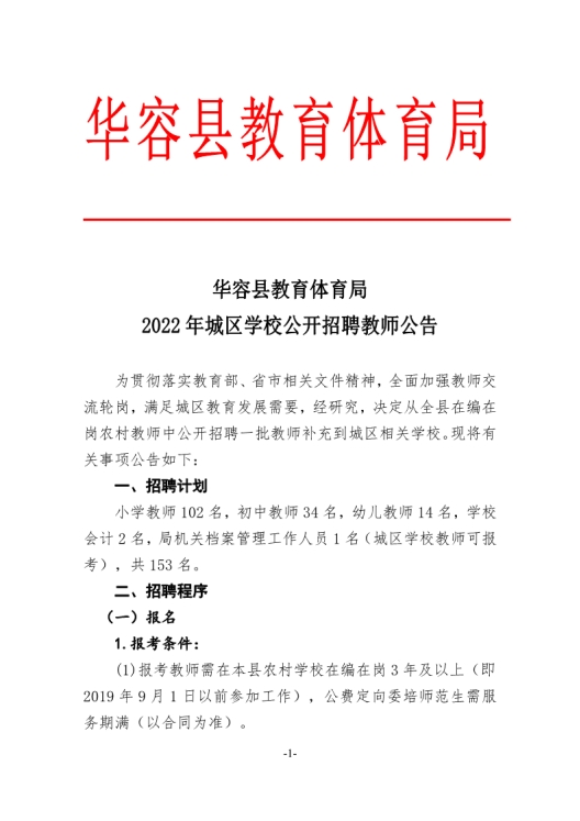 2022年湖南岳陽華容縣城區(qū)學(xué)校公開招聘教師公告【153人】
