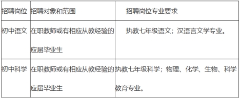 現(xiàn)因?qū)W校工作需要,擬招聘初中語文、科學非編代課教師各1名,歡迎具備相應條件的教師前來應聘,具體工作崗位要求與待遇面談。