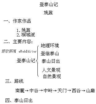 第2段:登臨泰山,重點(diǎn)記敘登山的艱難及到達(dá)山頂后所見景象。