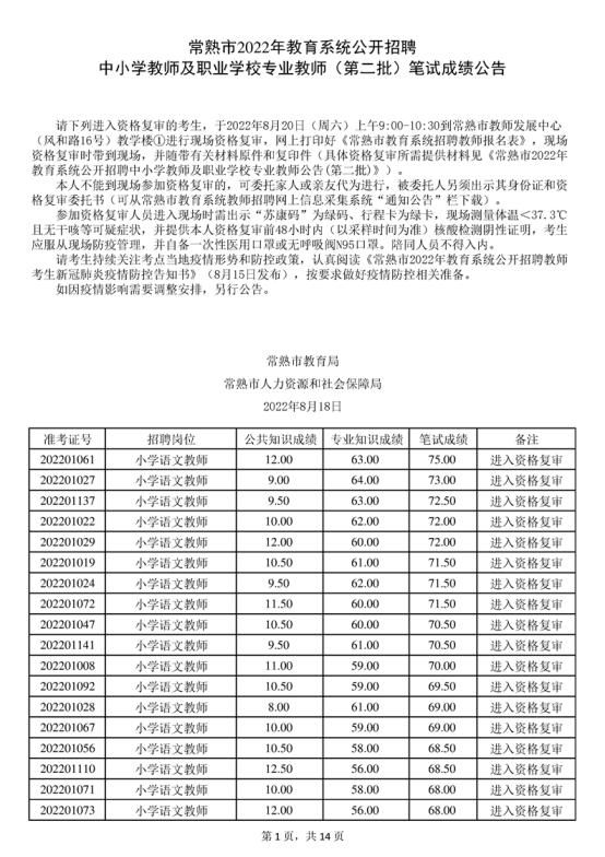 2022年蘇州常熟市教育系統(tǒng)公開招聘中小學(xué)教師及職業(yè)學(xué)校專業(yè)教師(第二批)筆試成績(jī)公告