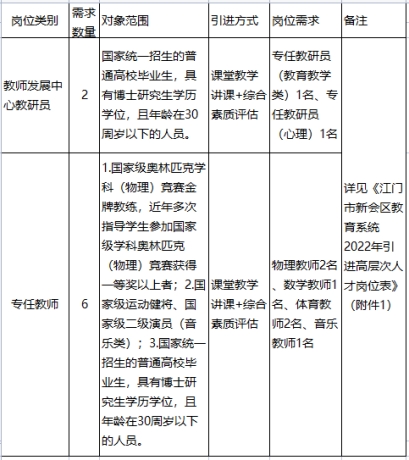 1.江門市新會(huì)區(qū)教育系統(tǒng)2022年引進(jìn)高層次人才崗位表.xlsx