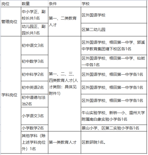 ③溫州市民辦學(xué)校中經(jīng)同級教育、人力社保部門同意流動或備案的原公辦學(xué)校在編在崗教師,第一、二、三、四類教育人才;
