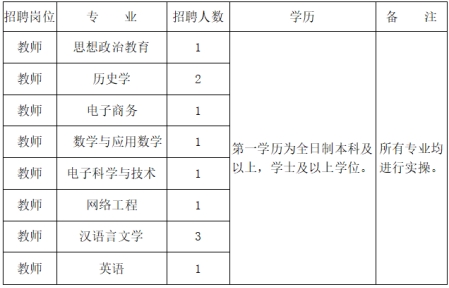 成立以學(xué)校主要領(lǐng)導(dǎo)為組長的招聘工作領(lǐng)導(dǎo)小組,招聘工作貫徹公開、平等、競爭、擇優(yōu)的原則,堅(jiān)持德才兼?zhèn)涞挠萌藰?biāo)準(zhǔn),采取報(bào)名、資格審查、面試及實(shí)操、體檢、考察、聘用等程序進(jìn)行。