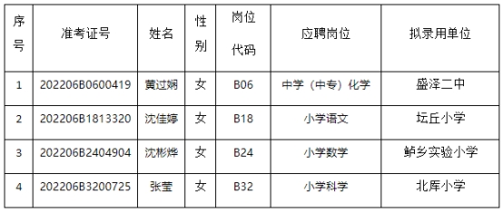 根據(jù)《2022年蘇州市吳江區(qū)公開招聘備案制教師公告》,經(jīng)過考試、體檢、政審等程序,以下擬錄用人員予以公示。