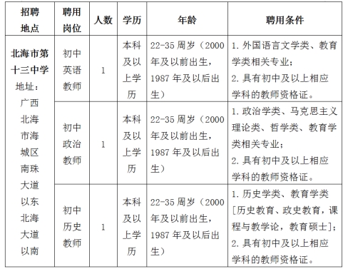 本次招聘工作由北海市第十三中學招聘領導小組組織實施并對招聘工作進行監(jiān)督。