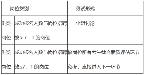 3.綜合素質(zhì)評(píng)估主要采取小組討論、問(wèn)答等形式,對(duì)考生進(jìn)行考察。各崗位具體考核形式見(jiàn)下表。