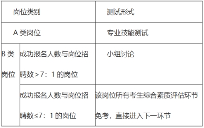 3.綜合素質評估主要采取專業(yè)技能測試、小組討論、問答等形式,對考生進行考察。各崗位具體考核形式見下表。