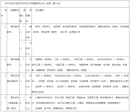 1.《2023年浙江省玉環(huán)中學(xué)公開招聘教師計(jì)劃一覽表》
