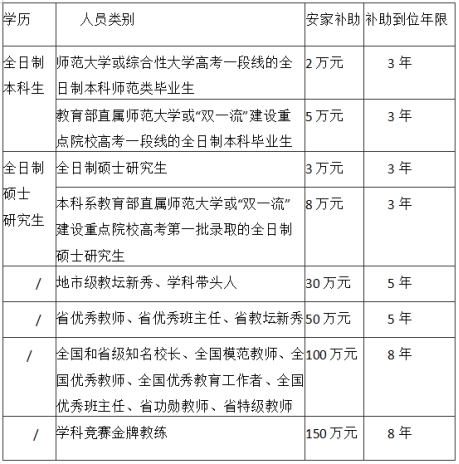 (一)給予專項(xiàng)招聘引進(jìn)的教育人才安家補(bǔ)助
