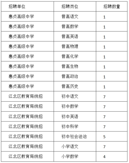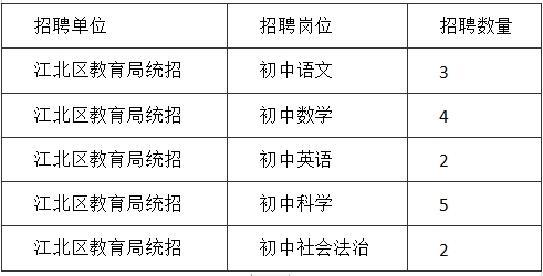 筆試具體時(shí)間、地點(diǎn)、形式以江北教育網(wǎng)公告為準(zhǔn),請隨時(shí)關(guān)注江北教育網(wǎng)。