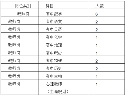 學,F(xiàn)有初一至高三6個年級共42個教學班,教職工158人。為適應學?焖侔l(fā)展,現(xiàn)公開招聘以下崗位人才: