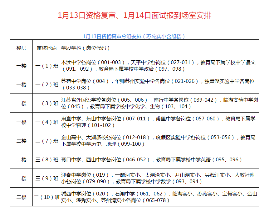 23年吳中區(qū)選聘優(yōu)秀畢業(yè)生1月13日資格復(fù)審、1月14日面試報到場室安排
