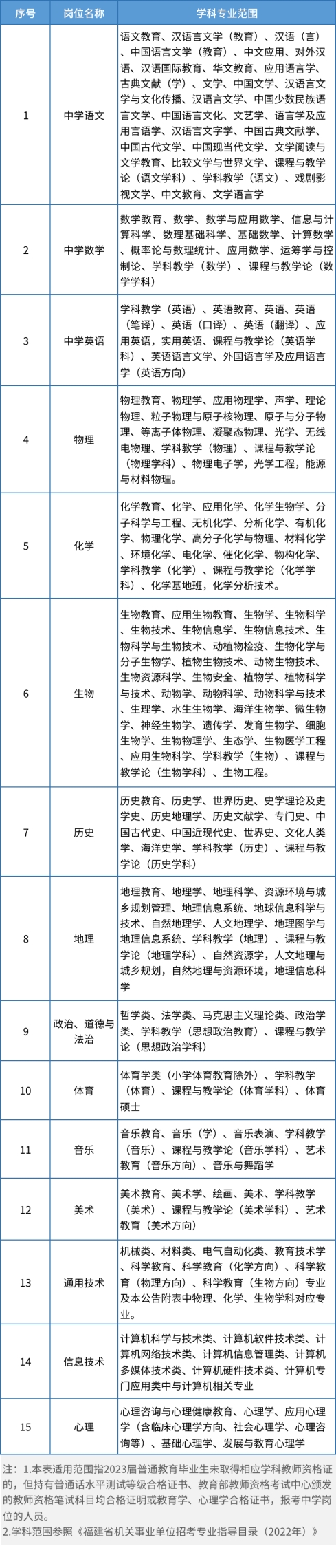 廈門市中小幼(中職)學(xué)校校園招聘學(xué)科專業(yè)范圍