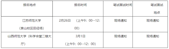 本次招聘在江蘇師范大學(xué)(泉山校區(qū))、山西師范大學(xué)等地設(shè)招聘點(diǎn),采取現(xiàn)場(chǎng)報(bào)名的方式,所有到現(xiàn)場(chǎng)報(bào)考人員及時(shí)了解并嚴(yán)格遵守當(dāng)?shù)匾咔榉揽毓ぷ饕,主?dòng)配合并自覺(jué)服從考試管理機(jī)構(gòu)的相關(guān)安排,做好個(gè)人安全防護(hù)。