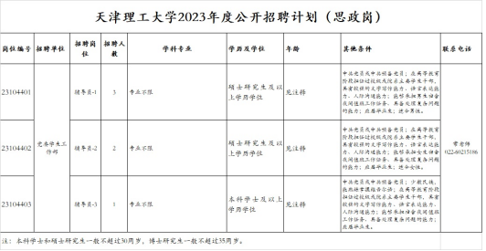 公開招聘方案于2023年3月2日在天津市教育委員會網(wǎng)站(http://jy.tj.gov.cn)和天津理工大學(xué)黨委教師工作部(人事處)門戶網(wǎng)站(http://rsc.tjut.edu.cn/)公開招聘專欄發(fā)布。具體招聘崗位見《天津理工大學(xué)2023年度公開招聘計劃(思政崗)》(附件1)。