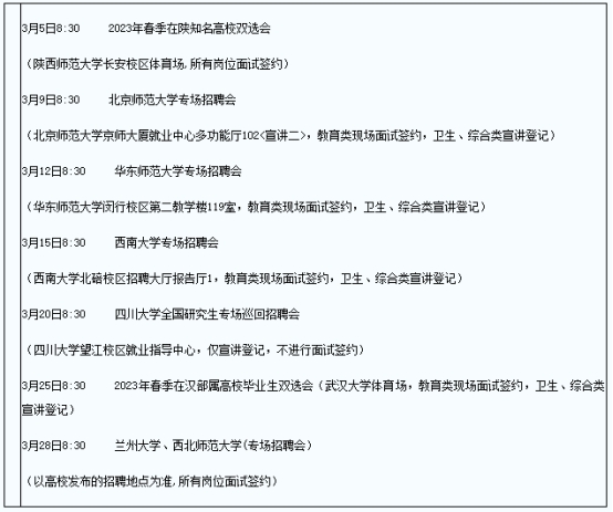 此次引才采取現(xiàn)場引進(jìn)的方式進(jìn)行,對符合引進(jìn)條件的教育、醫(yī)療及綜合類“雙一流”高校本科和碩士研究生及國家公費(fèi)師范生,赴外引才招聘會上根據(jù)各場次安排進(jìn)行現(xiàn)場報名、現(xiàn)場面試、現(xiàn)場簽約或登記。其他符合引進(jìn)條件的普通高校本科生及碩士研究生在最后一站(蘭州市)統(tǒng)一面試后簽約。我州引才行程具體時間安排如下: