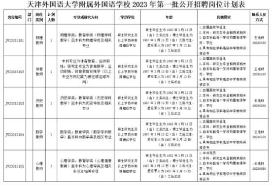 2023年3月8日開始,根據(jù)上級主管部門的統(tǒng)一安排,在天津市教育委員會(huì)網(wǎng)站(http://jy.tj.gov.cn/)、天津市人才服務(wù)中心網(wǎng)站(http://www.tjtalents.com.cn)、天津外國語大學(xué)附屬外國語學(xué)校官網(wǎng)(http://www.tfls.cn)等媒體發(fā)布招聘公告,發(fā)布時(shí)間不少于7個(gè)工作日。