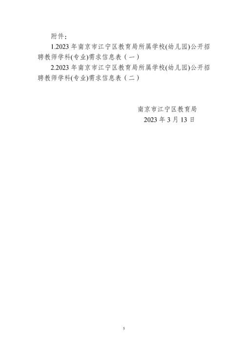 附件1:2023年南京市江寧區(qū)教育局所屬學校(幼兒園)公開招聘教師學科(專業(yè))需求信息表(一).pdf