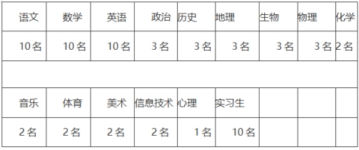 (語、數、英各10人,政、史、地、理、生各3人,化、音、體、美、信息技術各2人、心理1人,實習生10人)